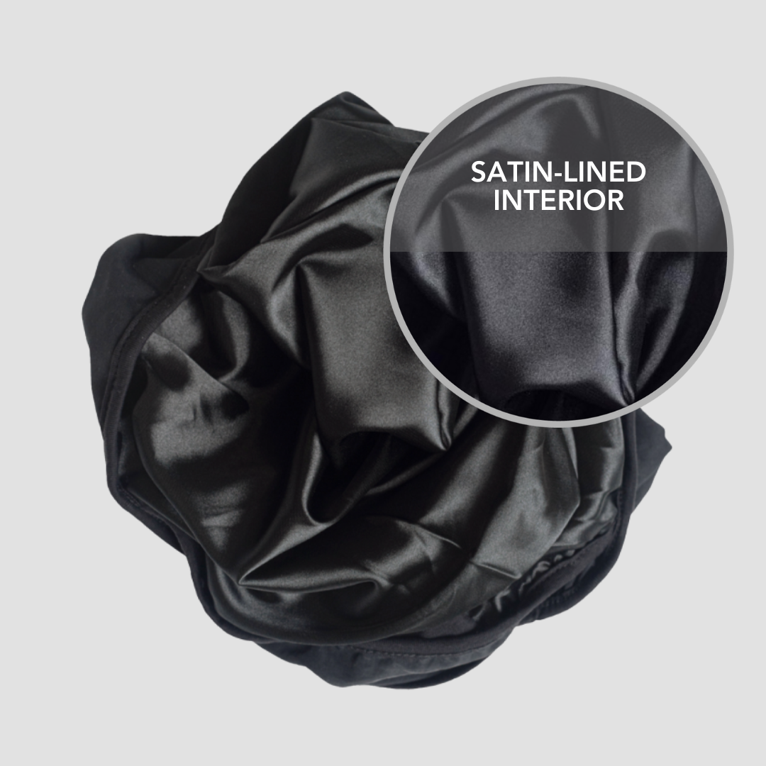 Folds easily for travel, storage, and on-the-go protection. The Standard size Fits most hair styles and lengths -(18" or less)The XL was created for exceptionally long, voluminous hair(i.e., 18"+, big curls, extensions, locs, braids etc.)