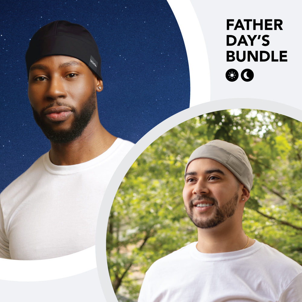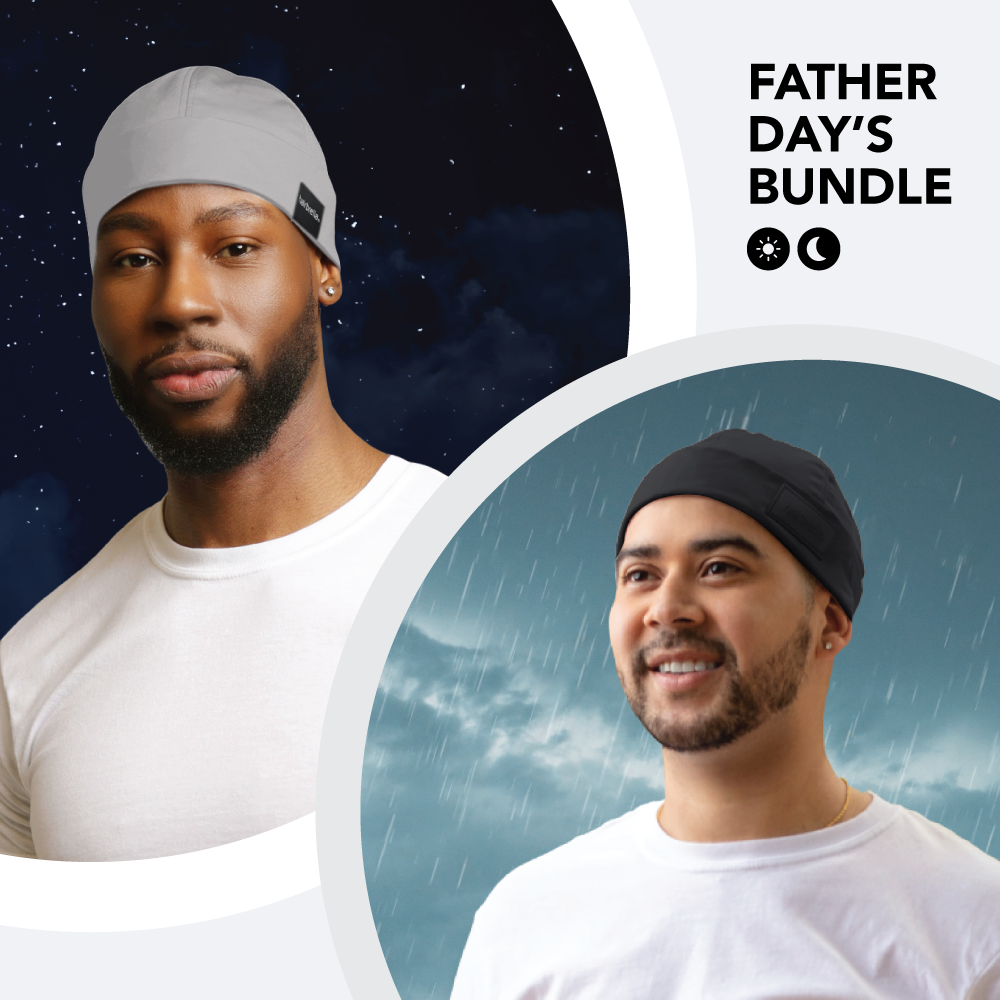 Give your dad the gift of year-round hair protection with our exclusive Hairbrella Father's Day Bundle. This bundle includes two revolutionary products designed to keep dad's hair looking sharp and shielded from the elements: the Men's Satin-Lined Sleep Cap and the Waterproof Satin-Lined Docker Hat.