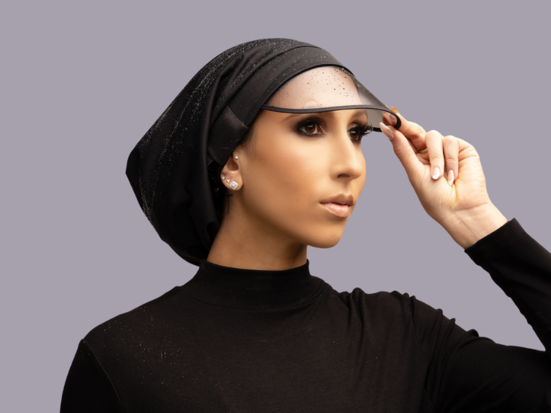 100% waterproof, satin-lined solution for hair and face protection with the a portable, detachable, and adjustable face shield.
