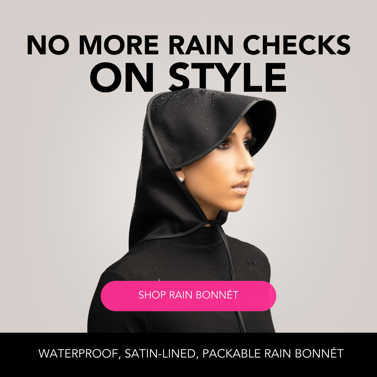 Never worry about the rain again with our 100% waterproof, satin-lined rain hats - uniquely designed to keep your hair dry and style protected no matter the forecast.