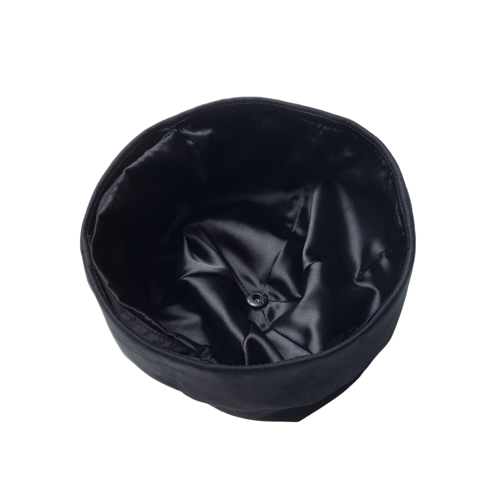 The Hairbrella Unisex Docker Hat folds into itself making it easy to fit in a purse, backpack, or suitcase.