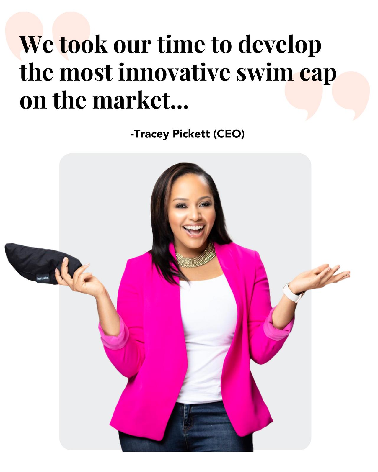 I've been working on it for two years and refused to cut any corners to make sure it was perfect for my Hairbrella community. It is truly the swim cap I wish I'd had growing up. The ones on the market were uncomfortable and made me feel like one of the "Coneheads".