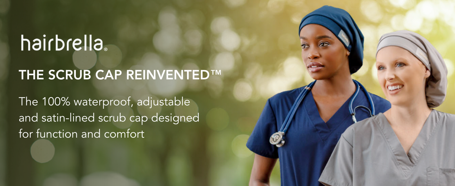 We've upgraded our scrub hats for nurses to include a moisture-absorbent sweatband along with our signature satin lining. The Hairbrella scrub cap is quick-drying and breathable.