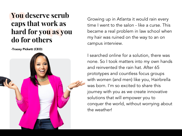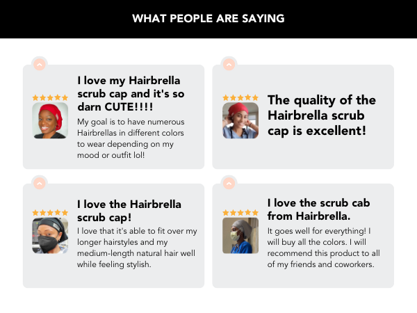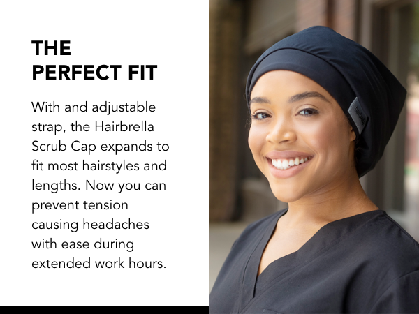 With an adjustable strap, the Hairbrella Scrub Cap expands to fit most hairstyles and lengths for men and women. Our working cap with buttons will prevent tension causing headaches with ease during extended work hours.