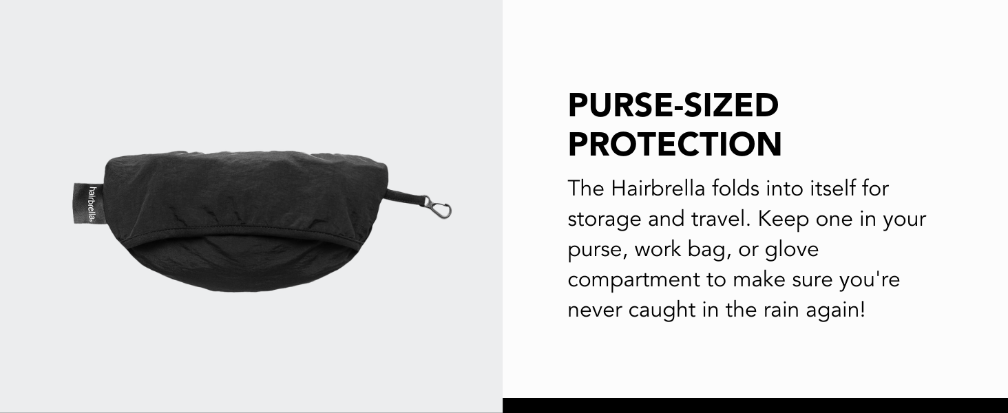 The Hairbrella Scrub Cap folds into itself for quick and easy storage. Clip it on your bag so it's always with you to use as your scrub, nursing, or surgical cap.