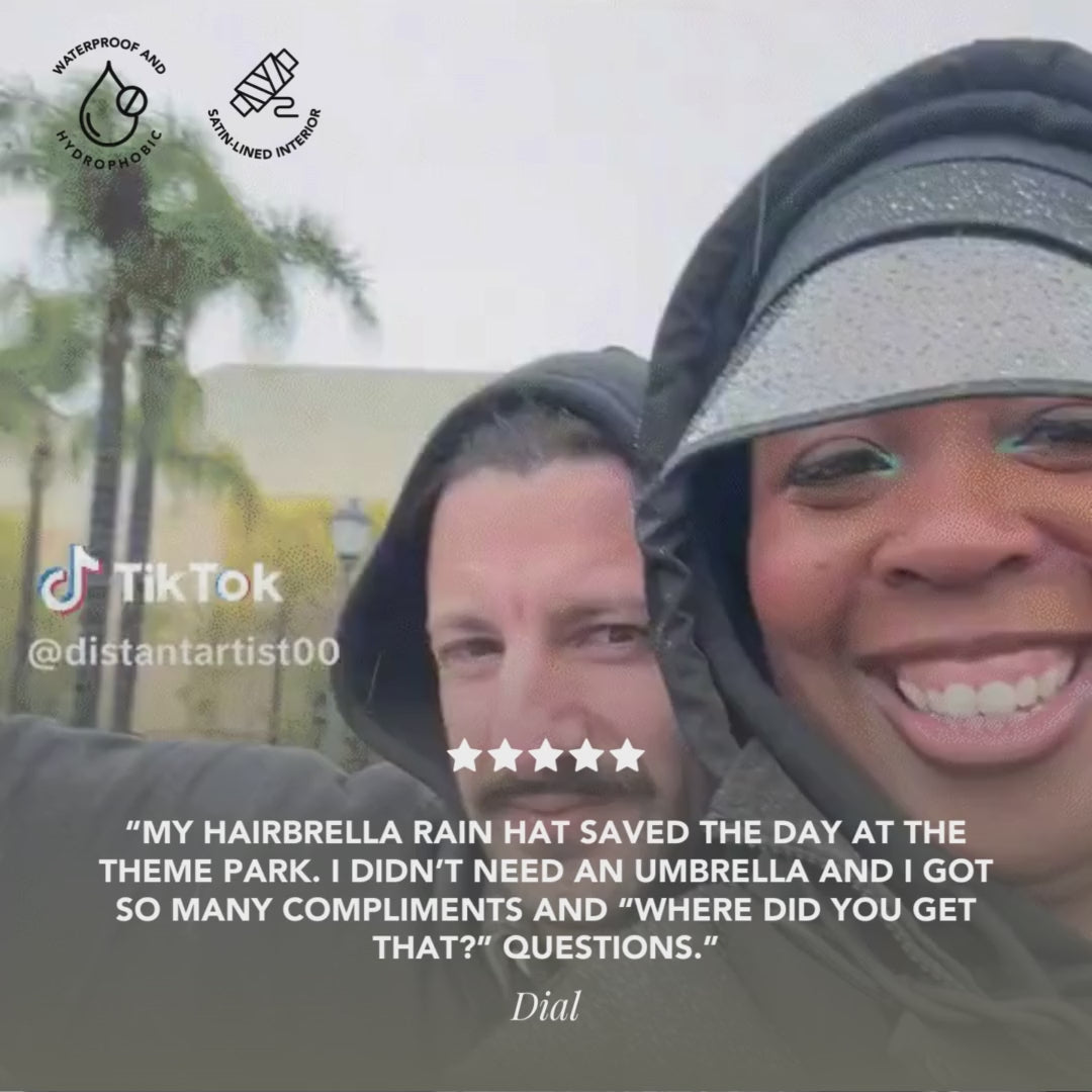 Meet the Hairbrella—the first-ever satin-lined, waterproof rain hat designed to function like a hands-free umbrella while keeping your look polished. Packable, stylish, and protective, it folds neatly into your bag and pops out ready to defend your hair from rain, humidity, and frizz. Whether you're on the go or on the runway, Hairbrella makes sure you never choose between function and fashion.