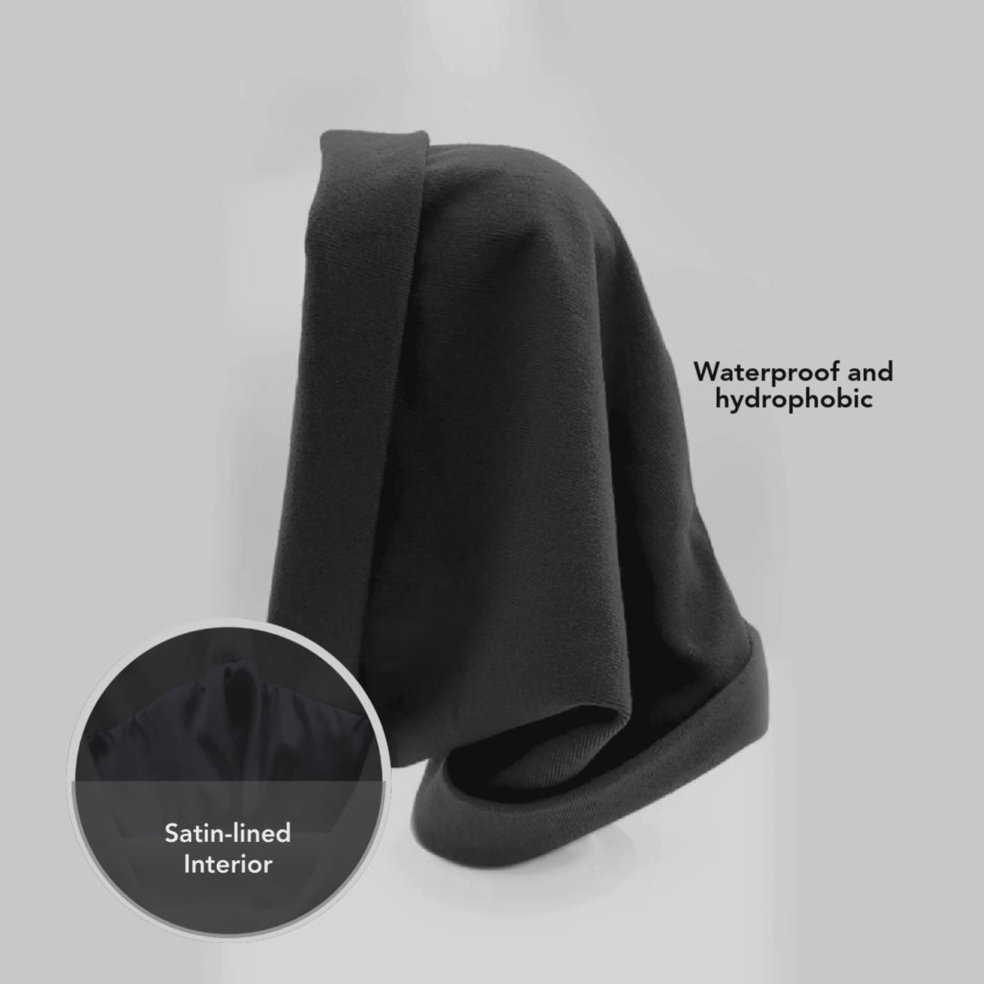 So impressed with my infinity scarf! It keeps my hair completely dry and lovely and warm. The satin lining works so well to keep my hair in place without any static. And on top of all that, it looks super-stylish and sophisticated!