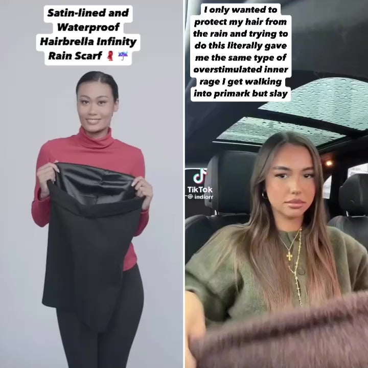 Merging practicality with elegance, the Hairbrella Infinity Rain Scarf is an essential winter accessory that doesn't compromise on style.