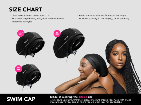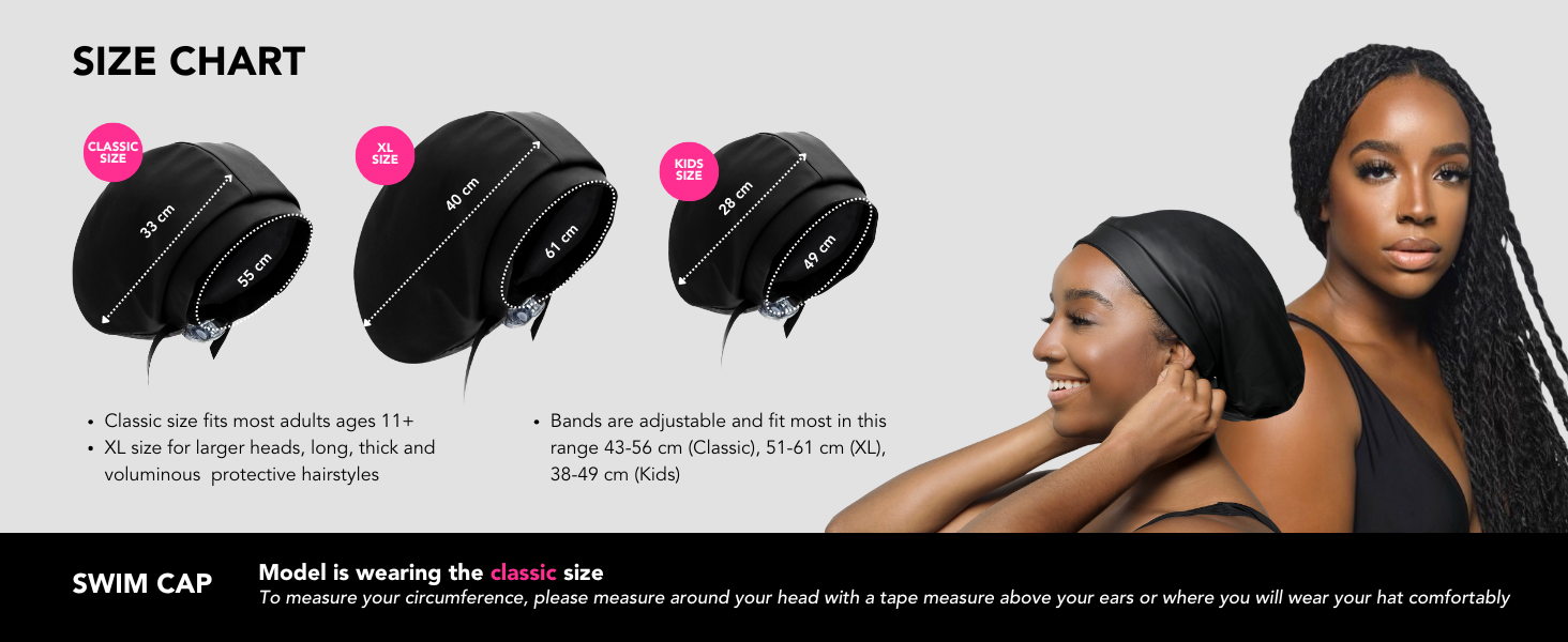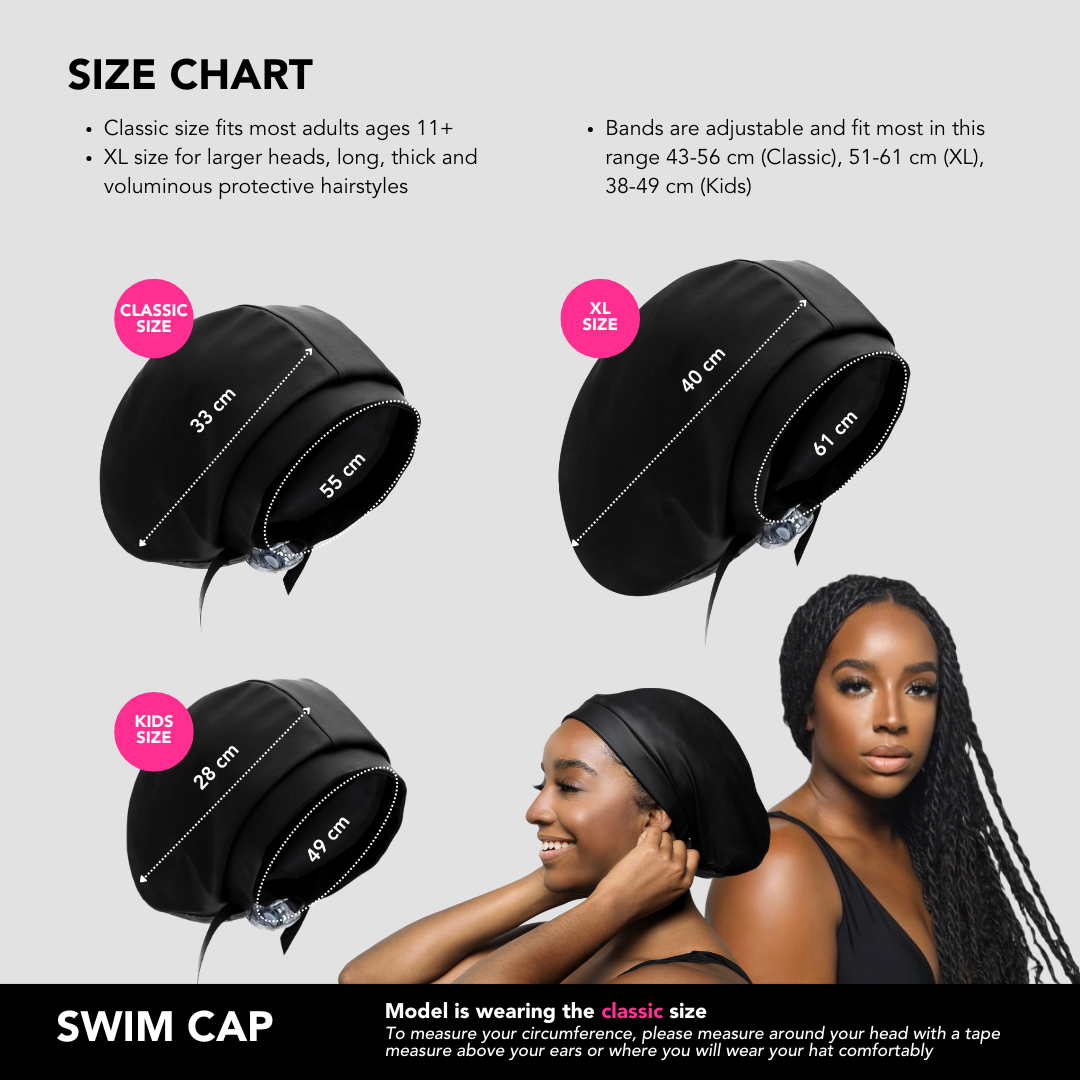 Introducing the world's first satin-lined and adjustable swim cap designed to keep your hair dry and style protected, even underwater!