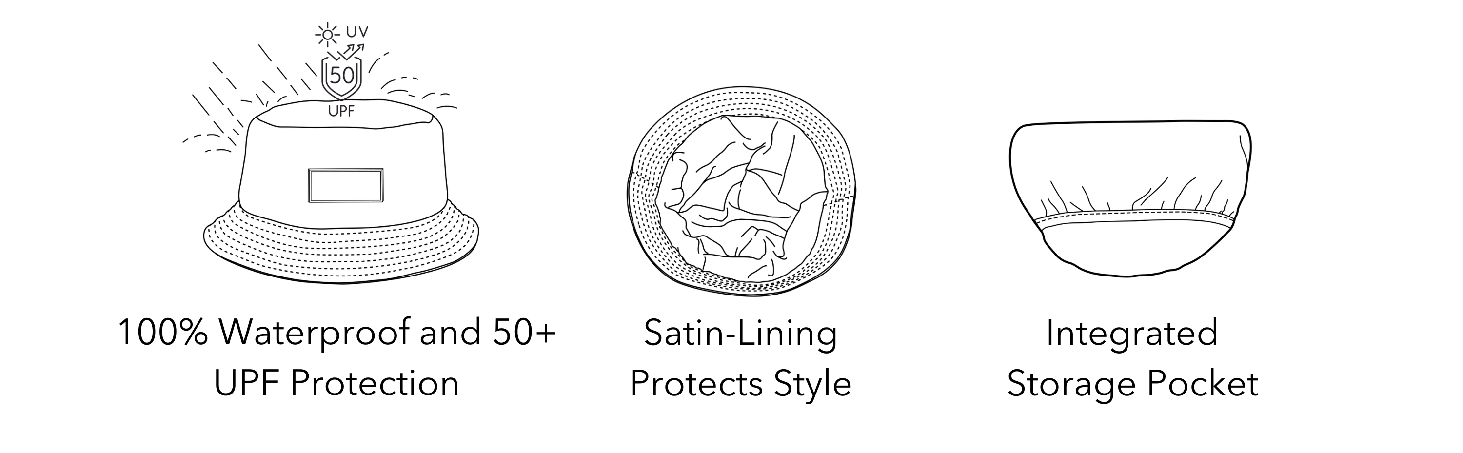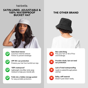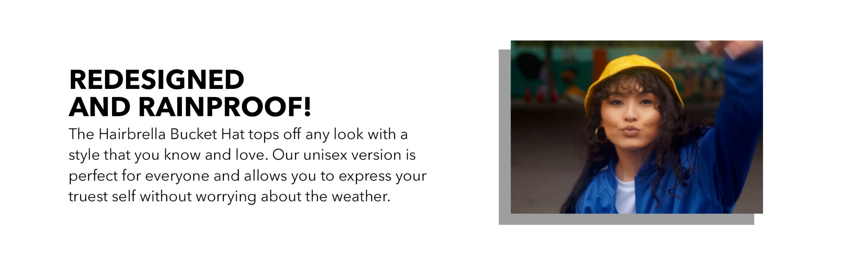 Designed to be as stylish as it is functional, the Hairbrella Bucket Hat is the perfect accessory to complement any outfit, rain or shine.
