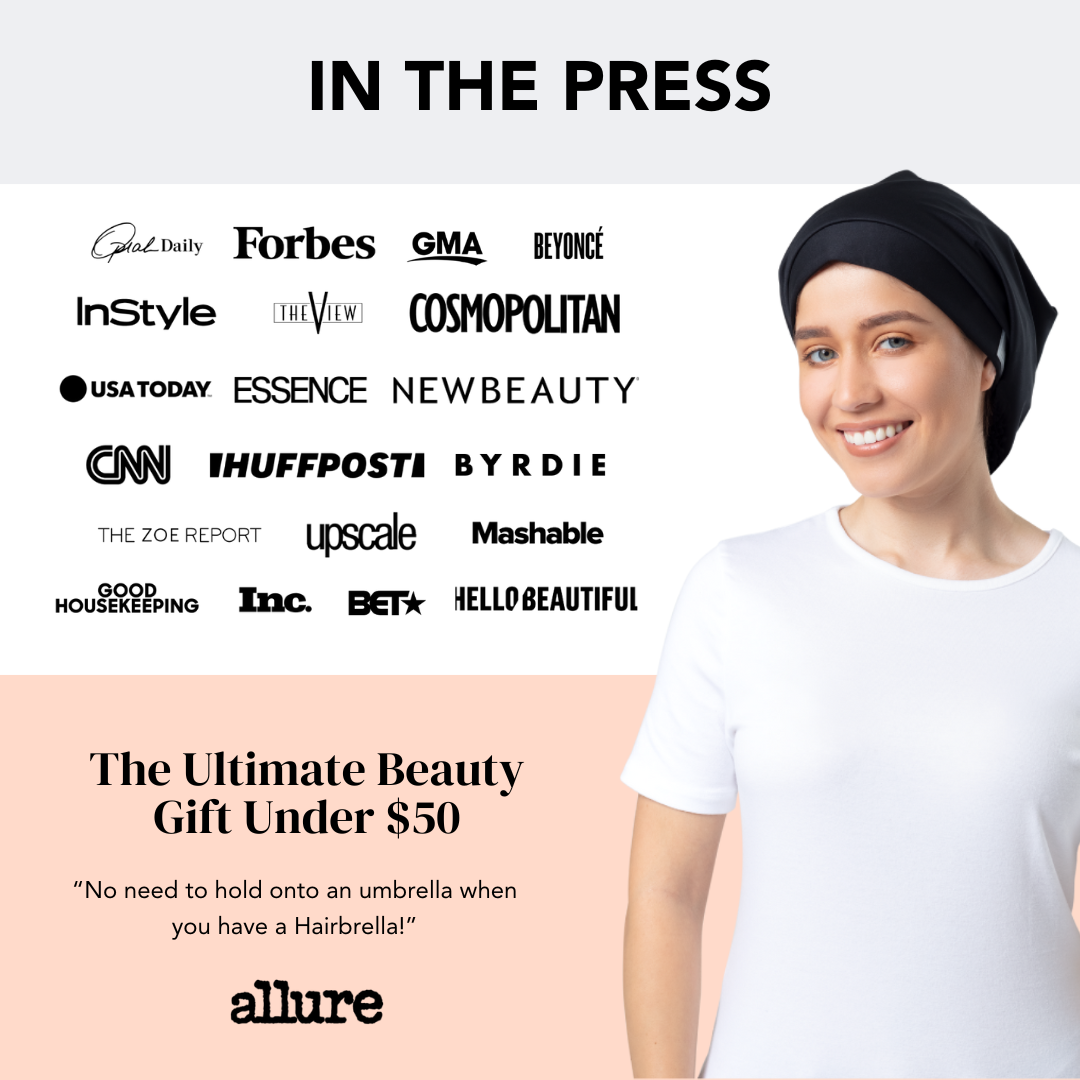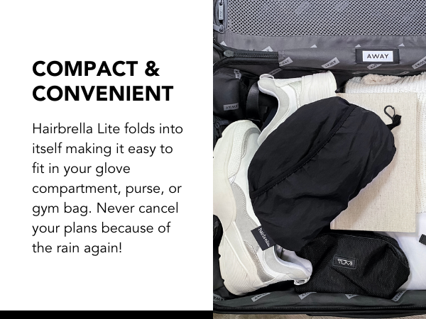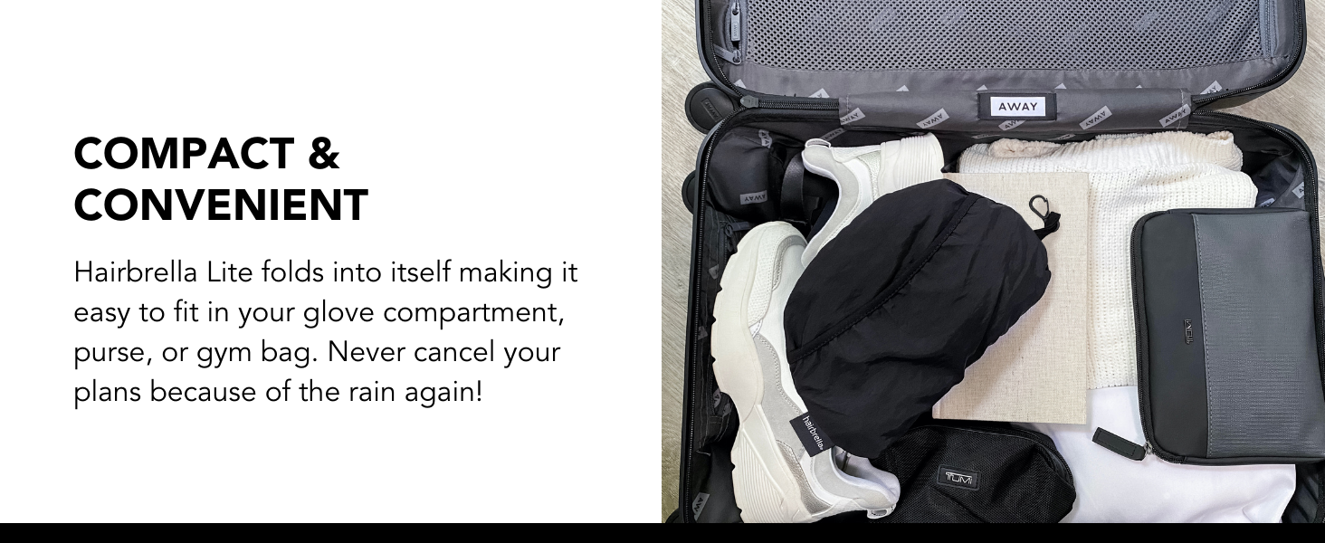 The Hairbrella Lite folds into itself creating portable protection that’s small enough to slip into your purse or glove compartment.