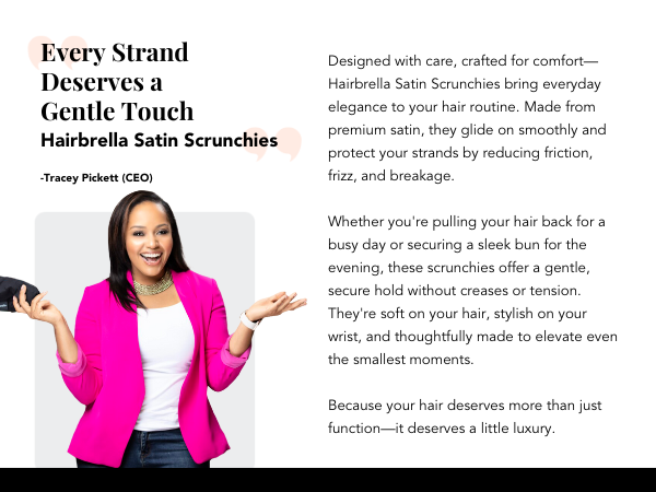 Absolutely love my Hairbrella Satin Scrunchies! 💕 They’re super soft, stylish, and don’t pull or damage my hair. Perfect for keeping my curls frizz-free and protected—plus they look so cute with any outfit! Total win. 🙌🏾✨