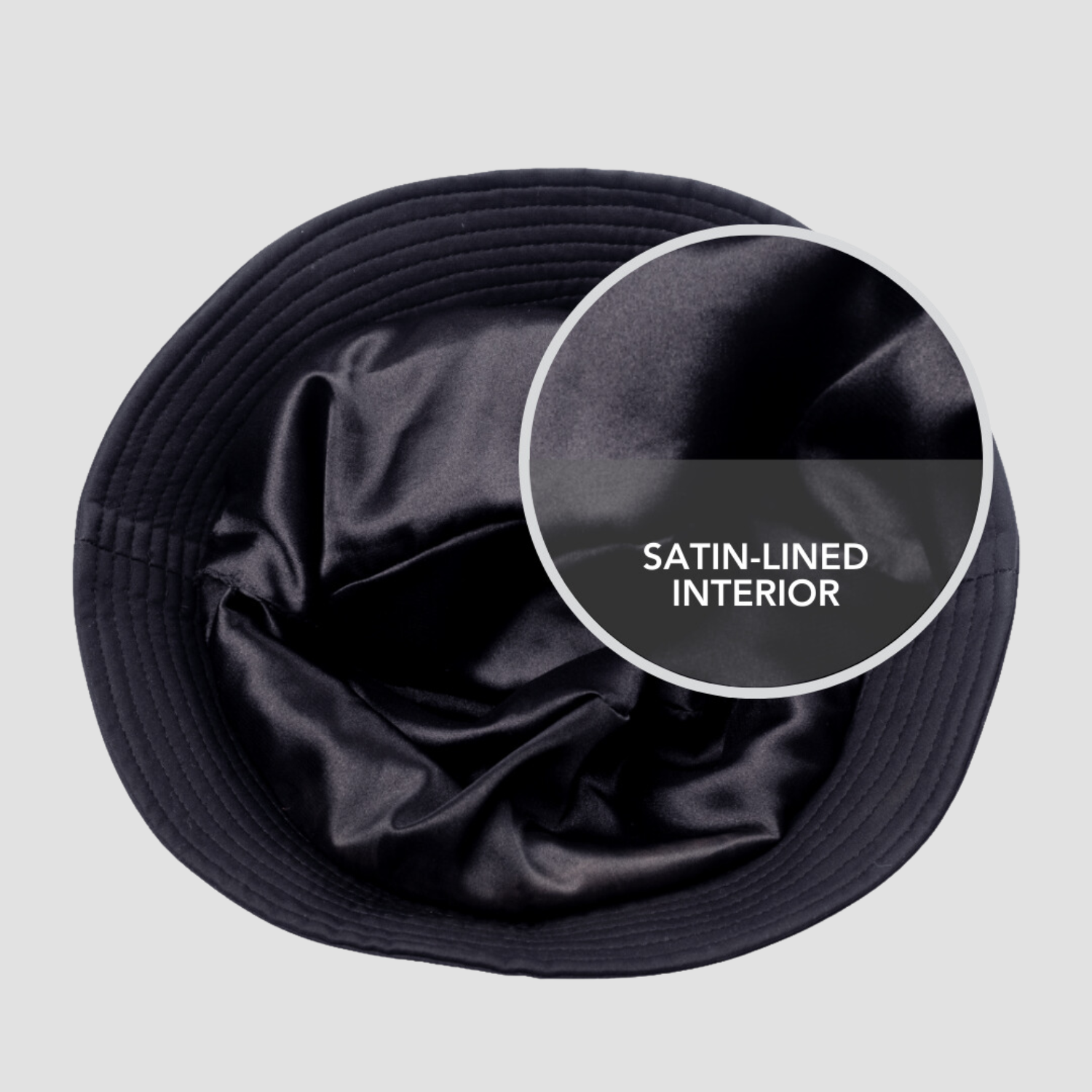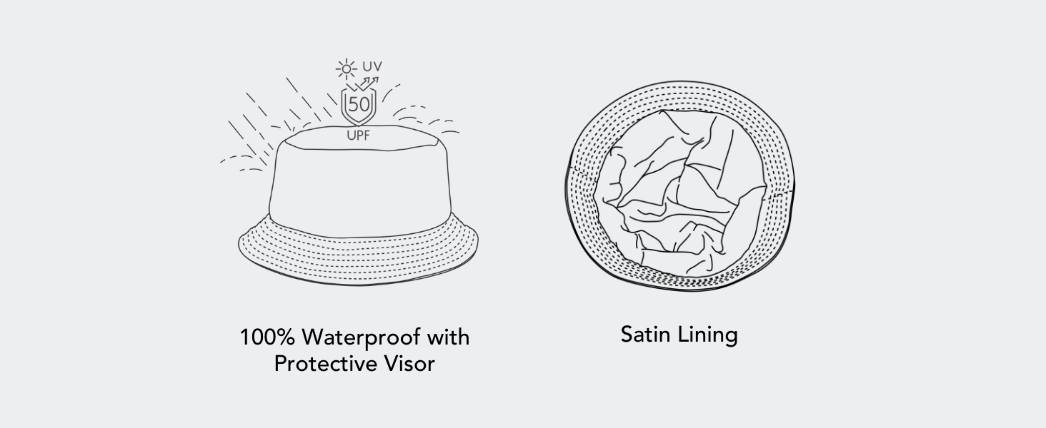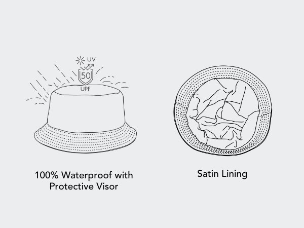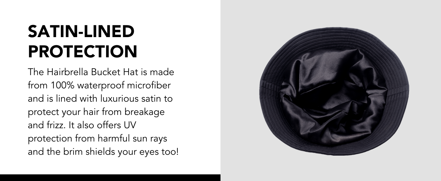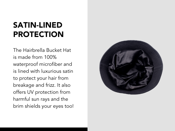 Like all Hairbrella designs, this bucket hat is lined with luxurious satin to reduce friction, minimize frizz, and protect your hair from breakage.