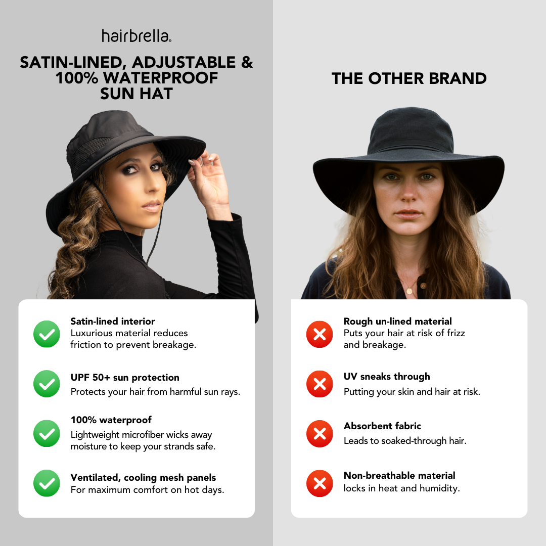 Don't settle for ordinary sun hats that leave you uncomfortable and unprotected. The Hairbrella Sun Hat is the perfect all-weather solution, combining advanced features with chic design for any occasion—from beach days to mountain hikes.