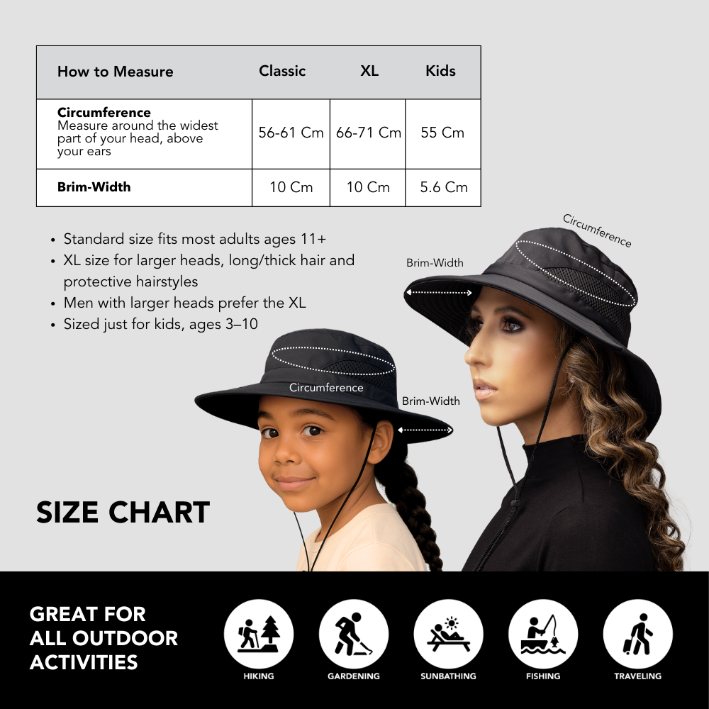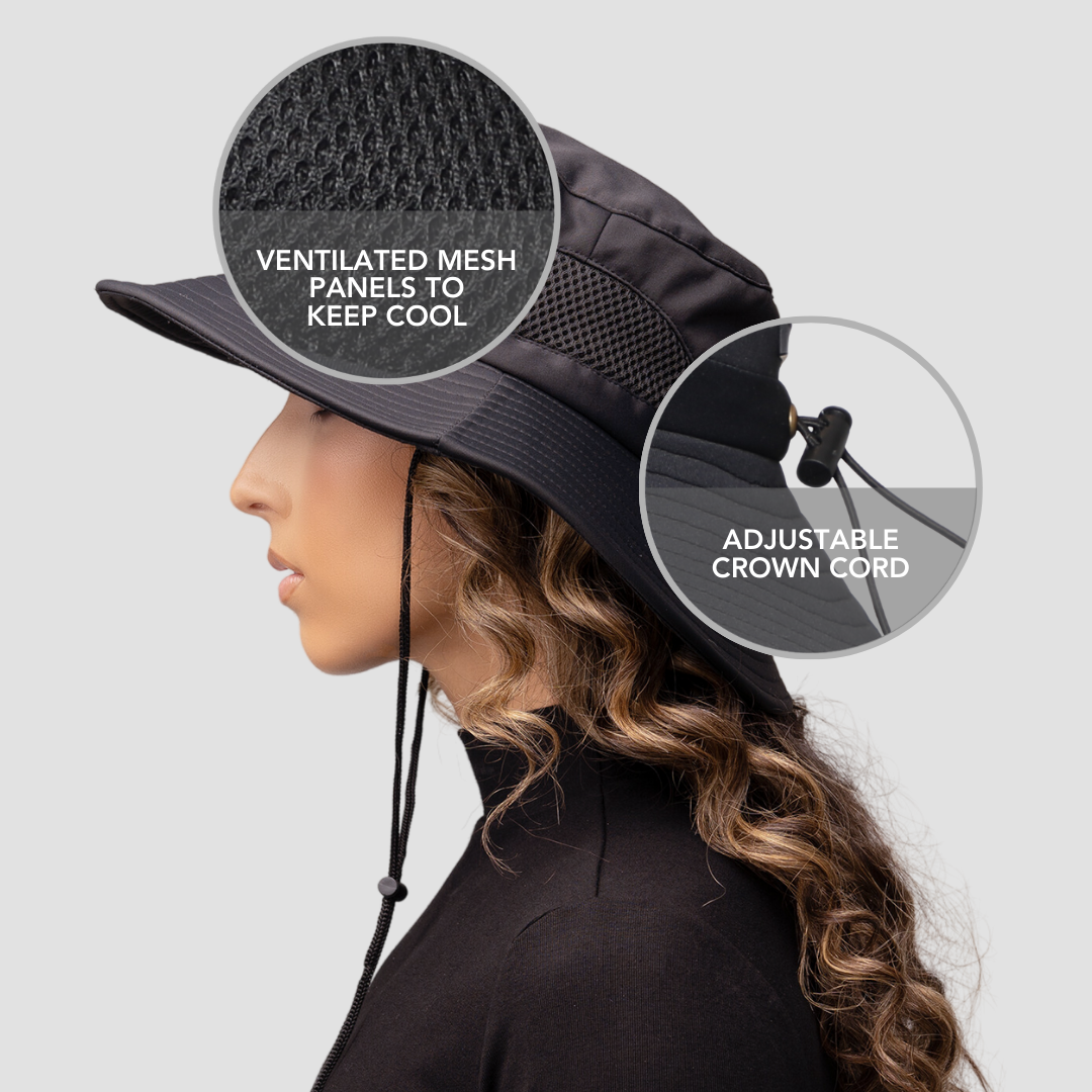 UPF50+ Fabric and Extended Brim for UV Sun Protection: