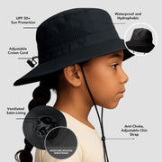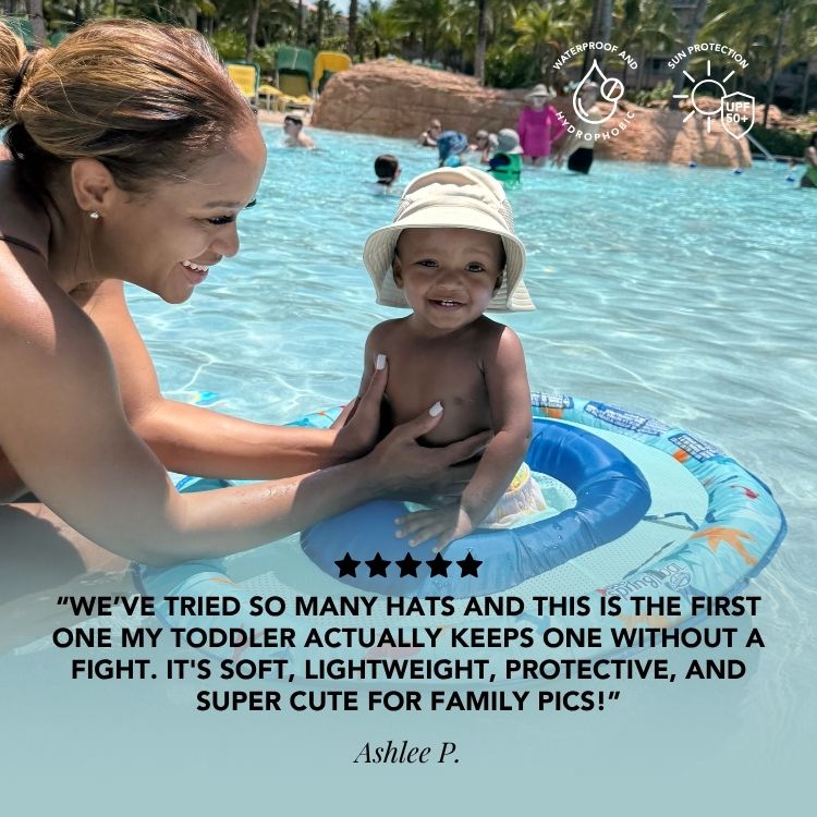 Your little one deserves full protection without sacrificing comfort or style. With a waterproof exterior, UPF 50+ sun protection, and a soft satin lining, this hat keeps their hair smooth, their skin safe, and you stress-free — no matter the forecast. The adjustable chin strap keeps it securely in place (and off the lost-and-found list) while they’re off exploring.