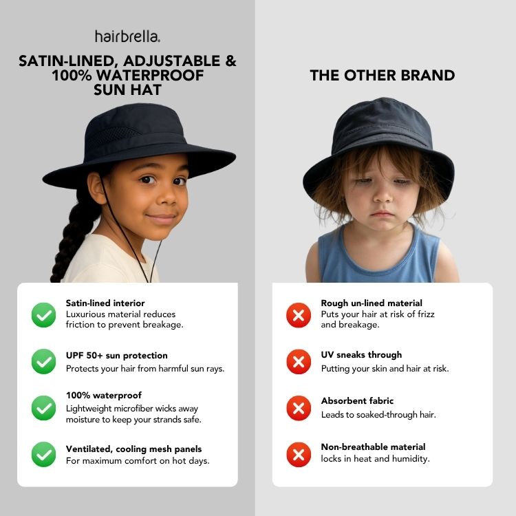 Don’t let ordinary hats slow your little one down! The Hairbrella Sun Hat for Kids is built for every adventure—rain or shine. With curl-protecting satin, UPF 50+ sun protection, and a wide brim, it keeps kids comfy, covered, and ready for fun—whether they’re splashing at the beach or exploring the backyard.